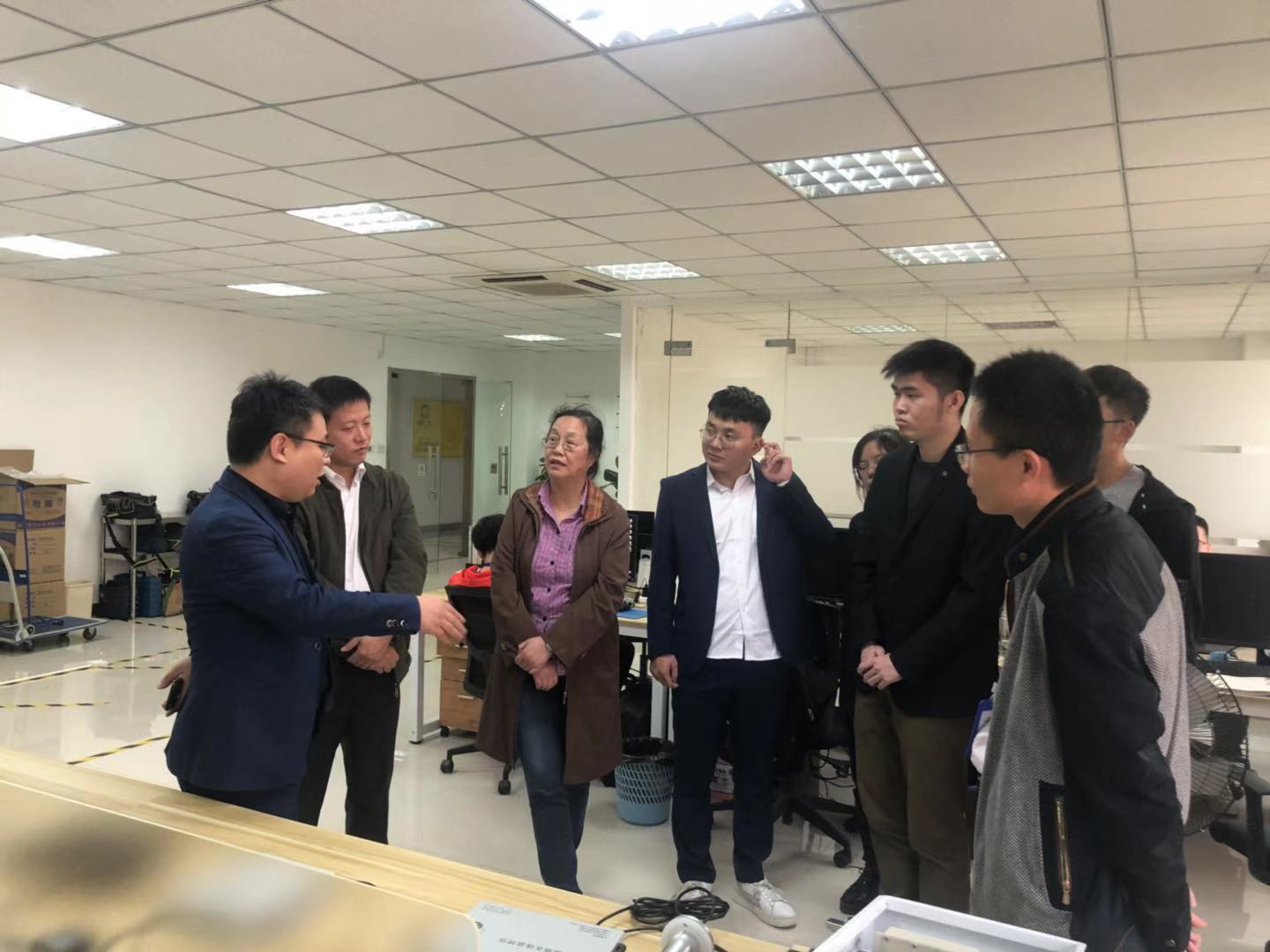 2019年11月8日下午,金沙集团1862cc成色徐平平院长、张伟华副院长带领学院大学生科技创新协会的三名同学来到南京智数科技有限公司,公司老总成材、人事经理施海玲及相关技术负责人接待了来访学校领导。