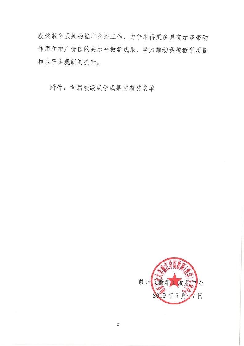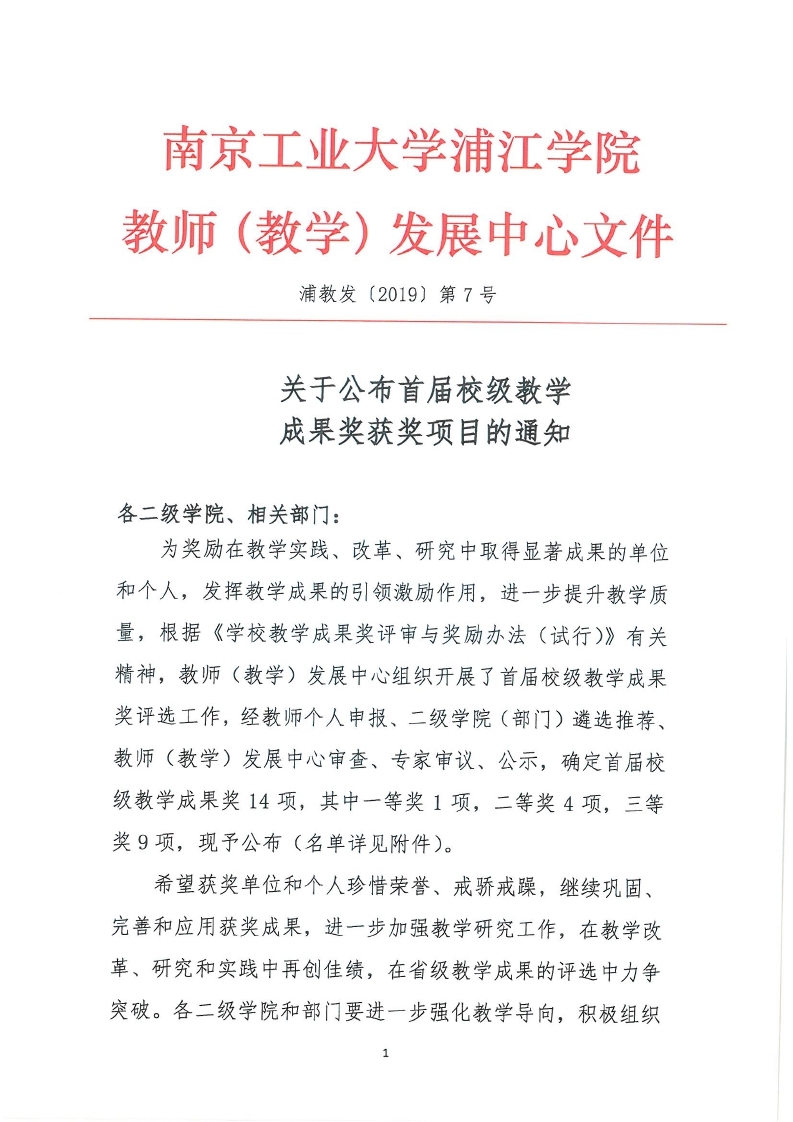 关于公布首届(2019年度)校级教学成果奖获奖项目的通知